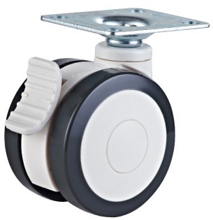 双轮系列:支架和轮芯采用高强度环保ABS工程塑料制造,防腐蚀、耐清洗; ●轮面采用高韧性聚氨酯材料,静音耐磨,双轮片设计动转更平稳灵活; ●轴套采用特尔灵工程塑料,防腐防潮,更具实用; ●适用于医疗床、医疗仪器设备配套使用。